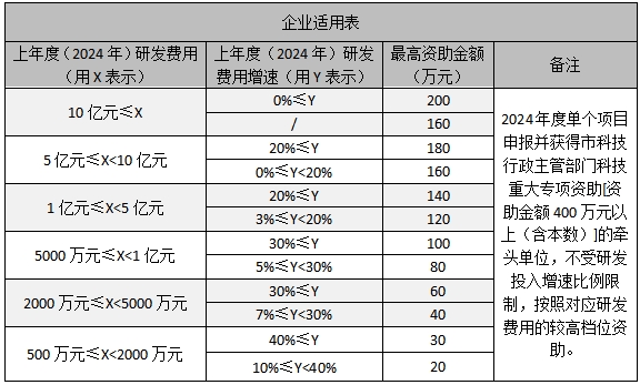结合当年度符合条件的企业数量和预算规模,根据企业研发费用增长幅度,分档给予定额资助。单家企业年度内资助资金不少于10万元,不超过500万元。